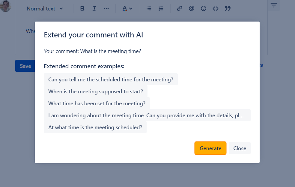 Extend your comment with help of the in-build AI helper: