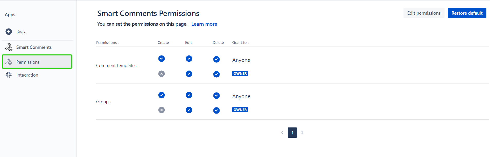 Comment Templates Permissions