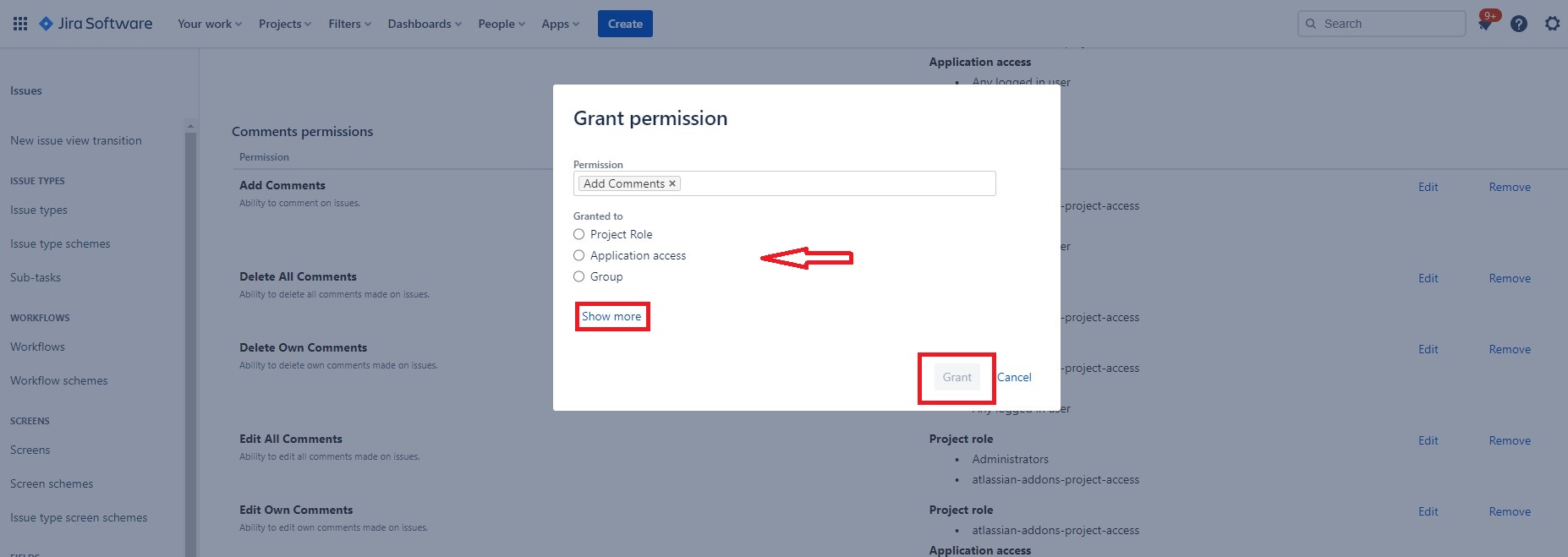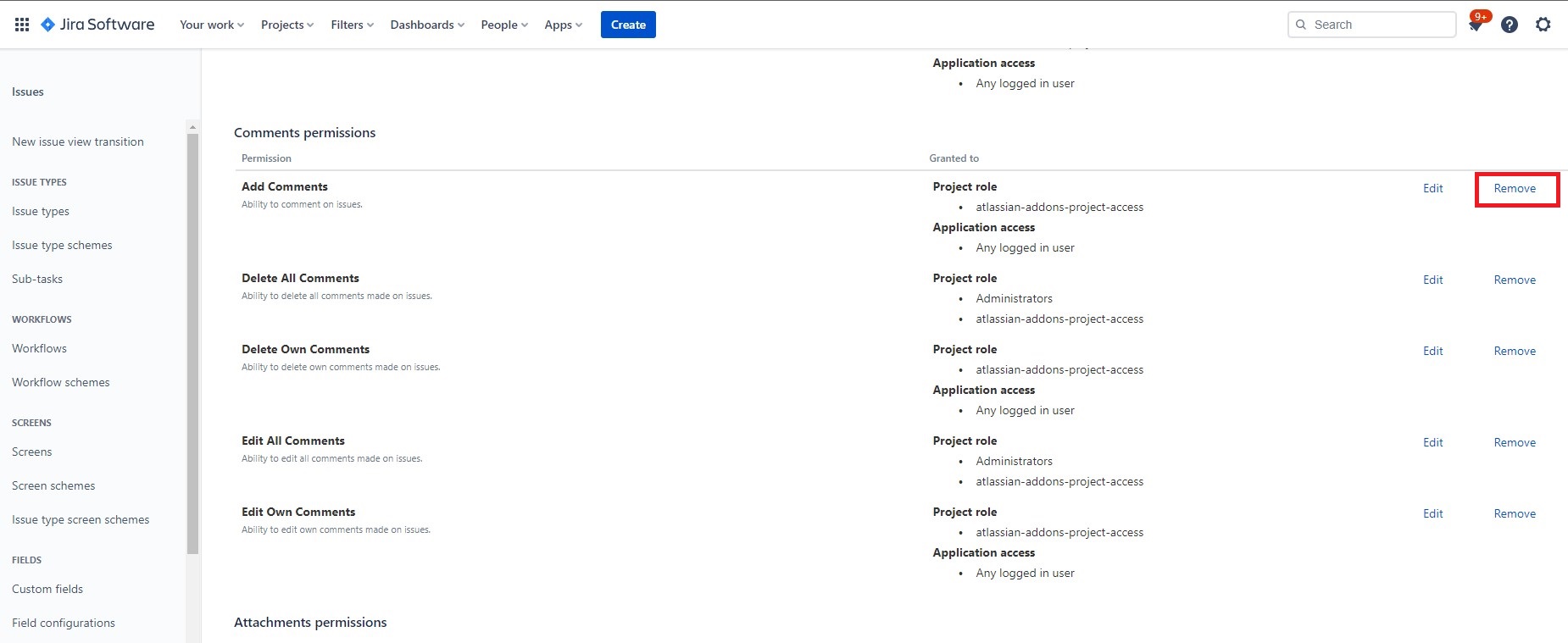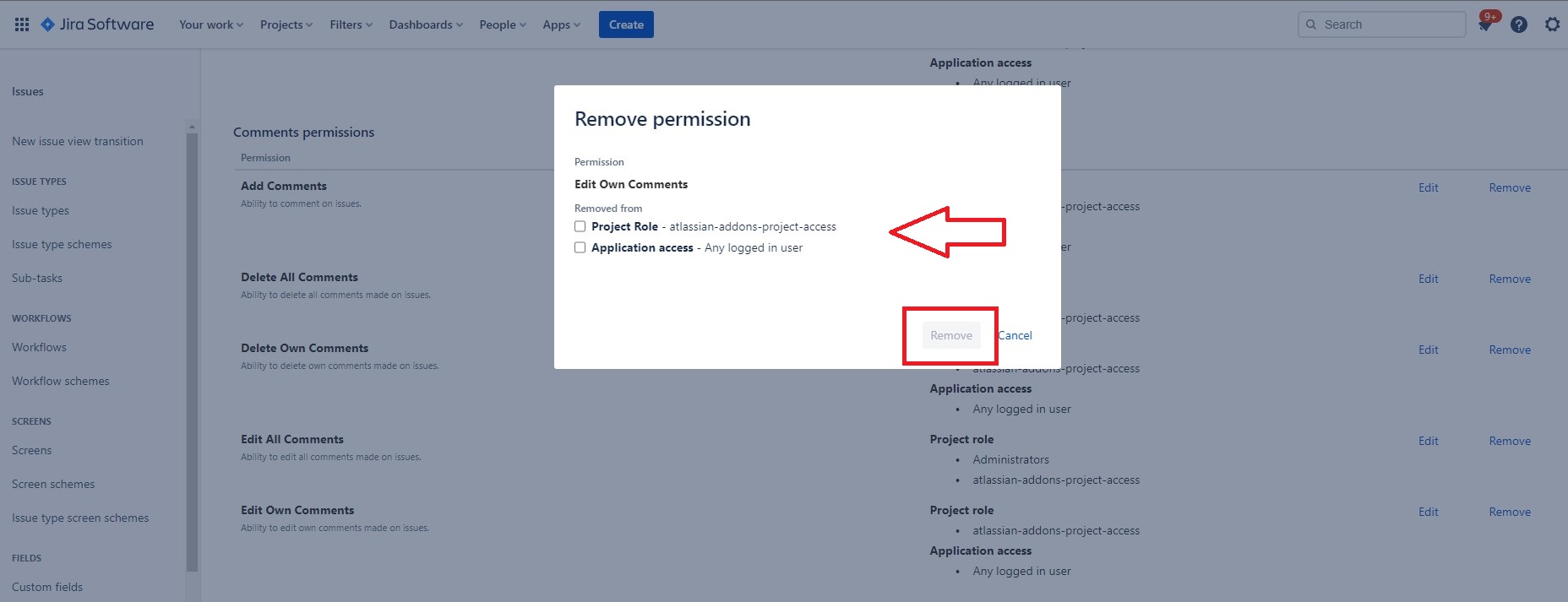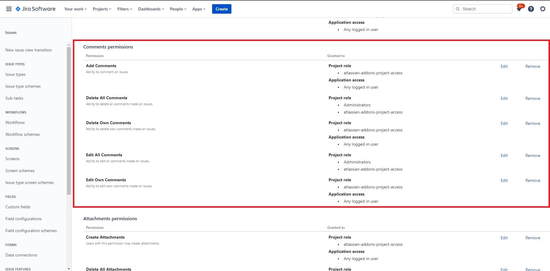 Smart Comments permissions are defined from the general Jira comments permissions settings and will affect both types, Native Comments, and Smart Comments.