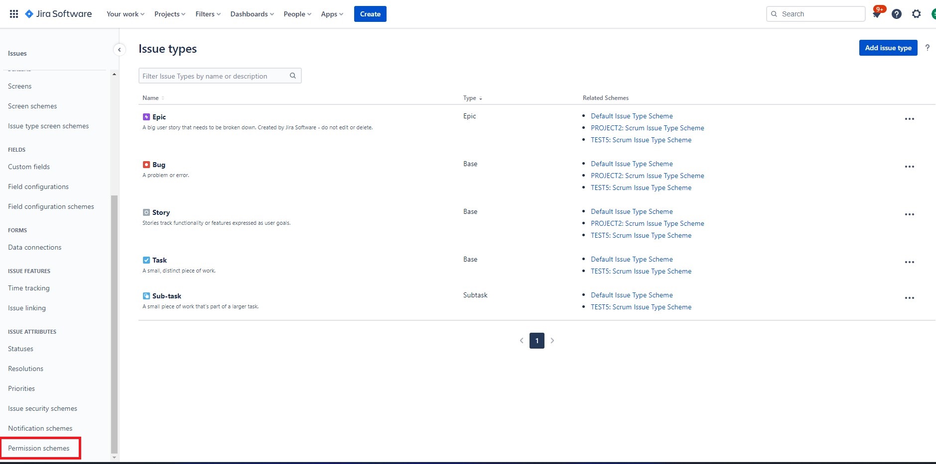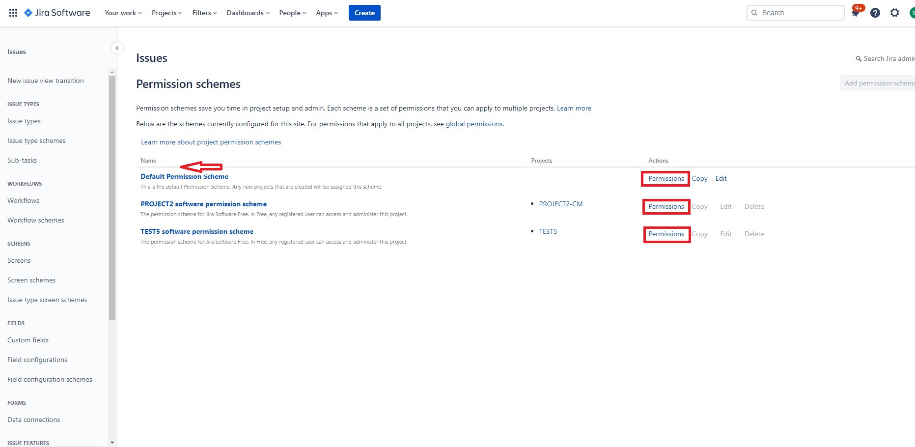 Find the Permission schemes item in the left sidebar.