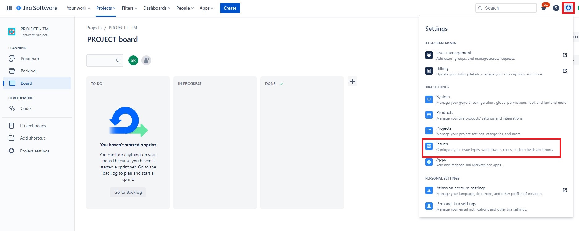 Click on Issues.