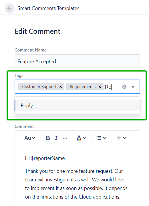 In order to assign a Tag to a Template, let's go to the Templates tab first and click the Create Template button or open the Edit Template dialog by clicking on the existing Template you want to assign a Tag to.