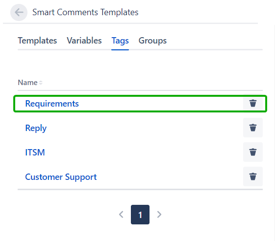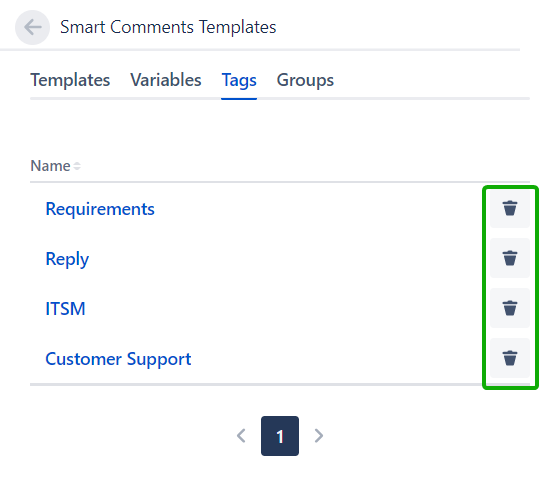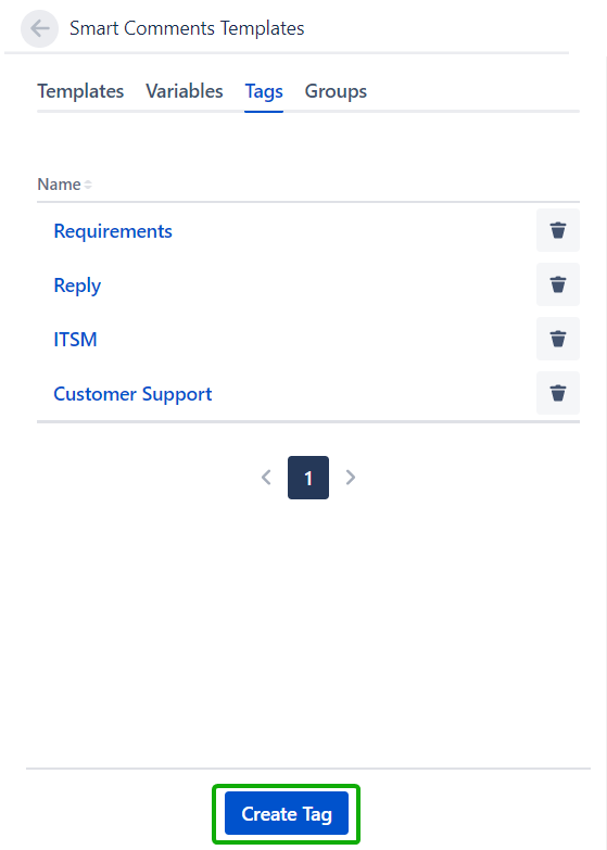 To delete the Tag from the system just click the trash bin icon and confirm your action by clicking the Delete button.
