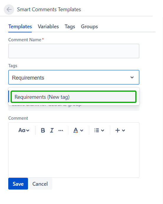 If you do not select any Tags when creating a template, then no Tag will be set.