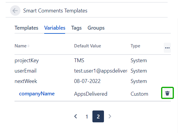 3. Click the bin icon in the Custom Variable row