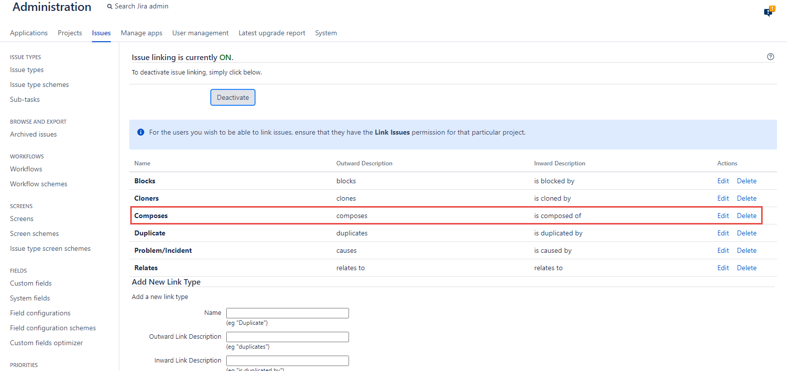 As a result, the new Composes issue linking will be created