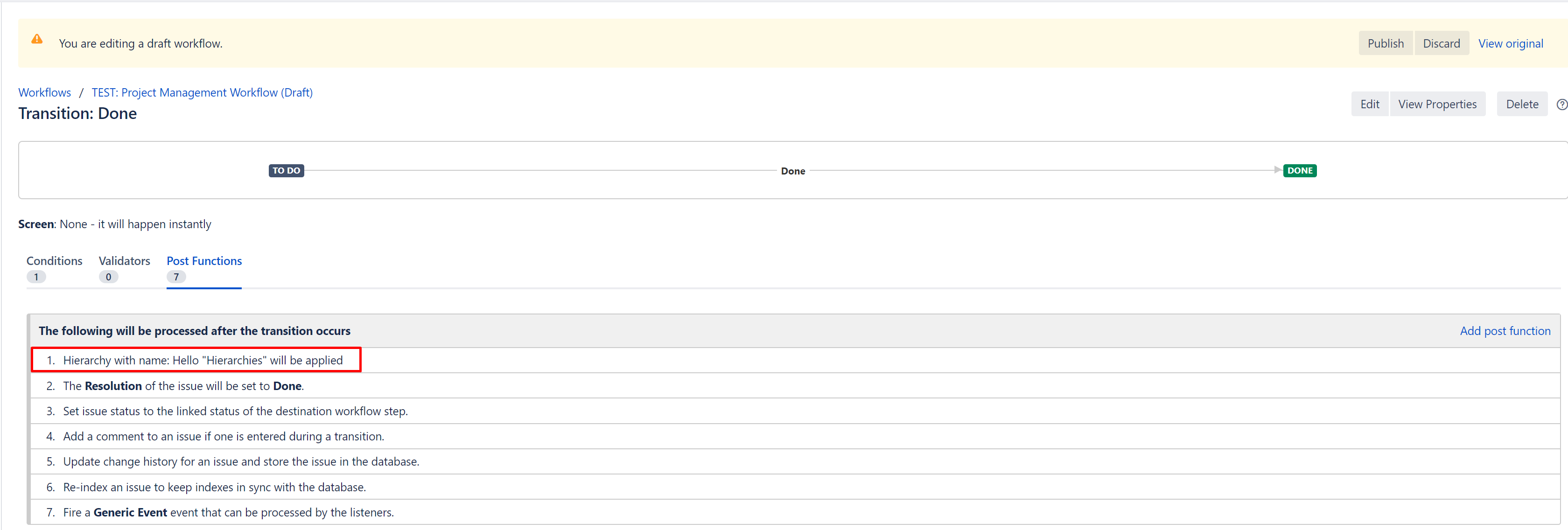 Select the Apply Hierarchy in the list of post functions and click Add.