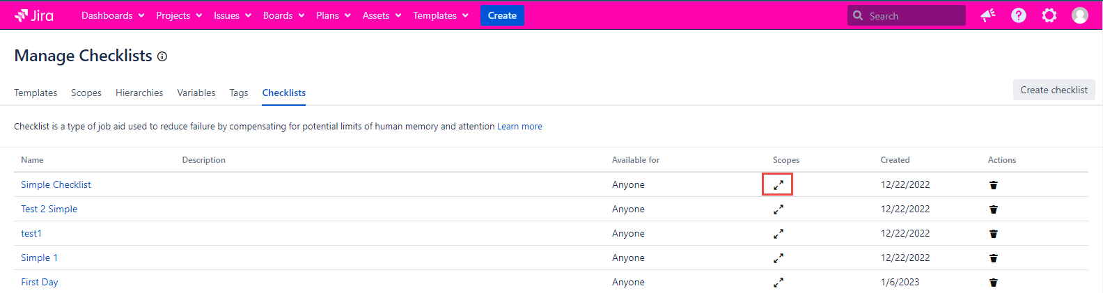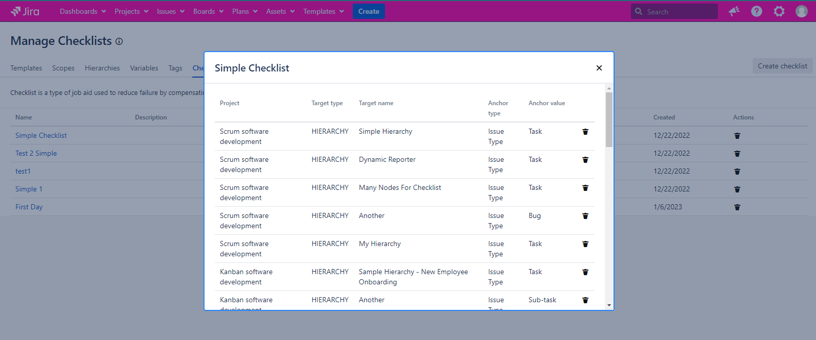 Anchor value | The issue type which this Checklist is added to |