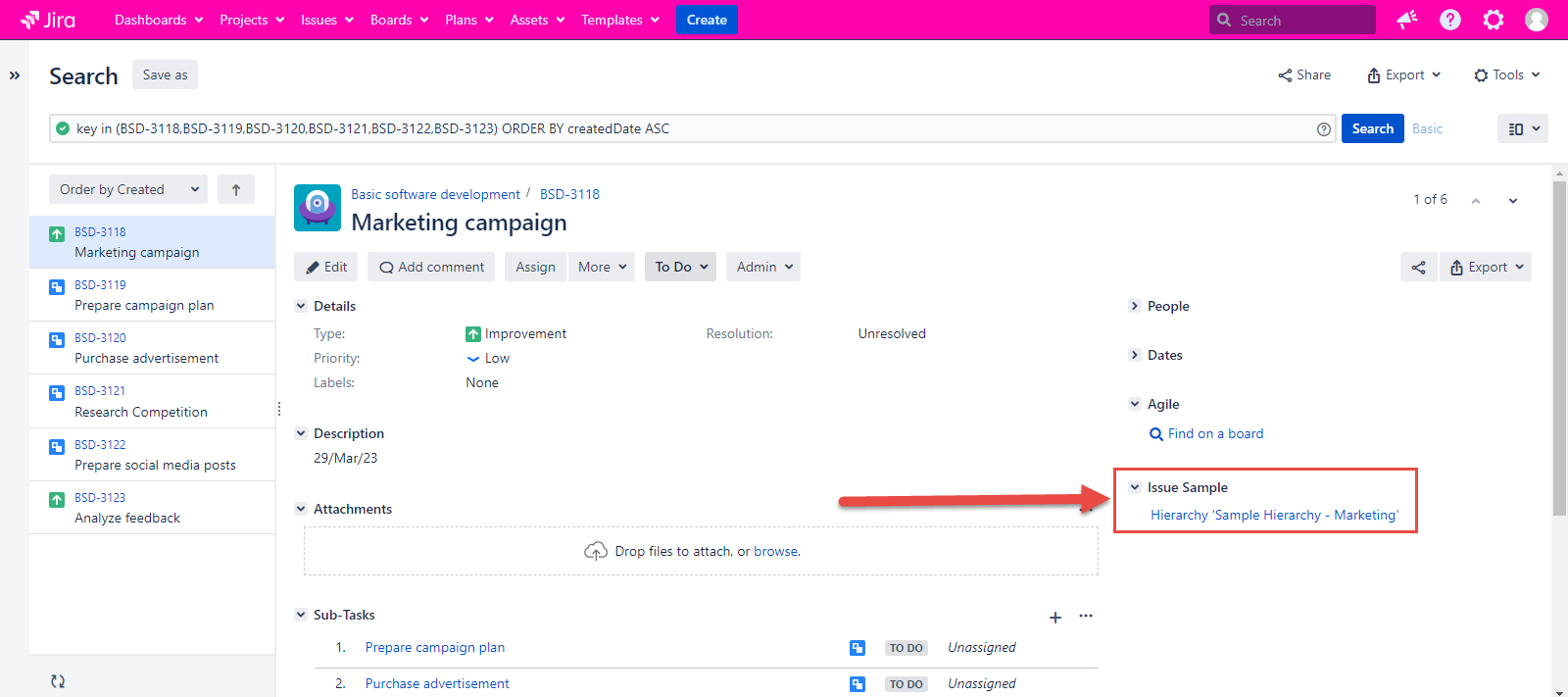 In case it is unchecked, the Hierarchy name with which the issue was created is saved. It can be displayed on the issue view page if the Hide the Issue Sample panel configuration is also unchecked.