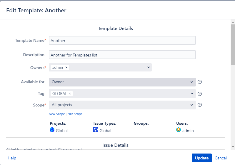 To enable the template editing the user is to be granted the ‘Create Issue’ project permission as well.