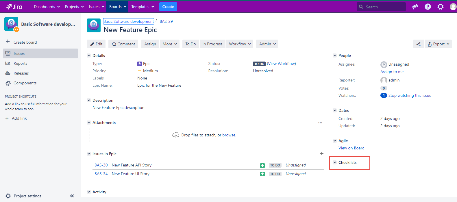 For example, if the ‘Smart’ Template with the ‘50’ ID was created using the ‘Scrum Software Development’ project and the story as the issue type, applying this template will create the story in the ‘Scrum Software Development’ project containing the 'Smart’ Template fields values.