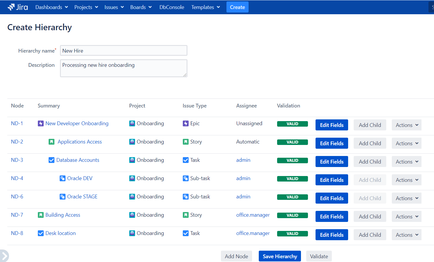 Hierarchies allow users to create a set of related issues (i.e. Sub-tasks and Stories) in a matter of a few clicks.