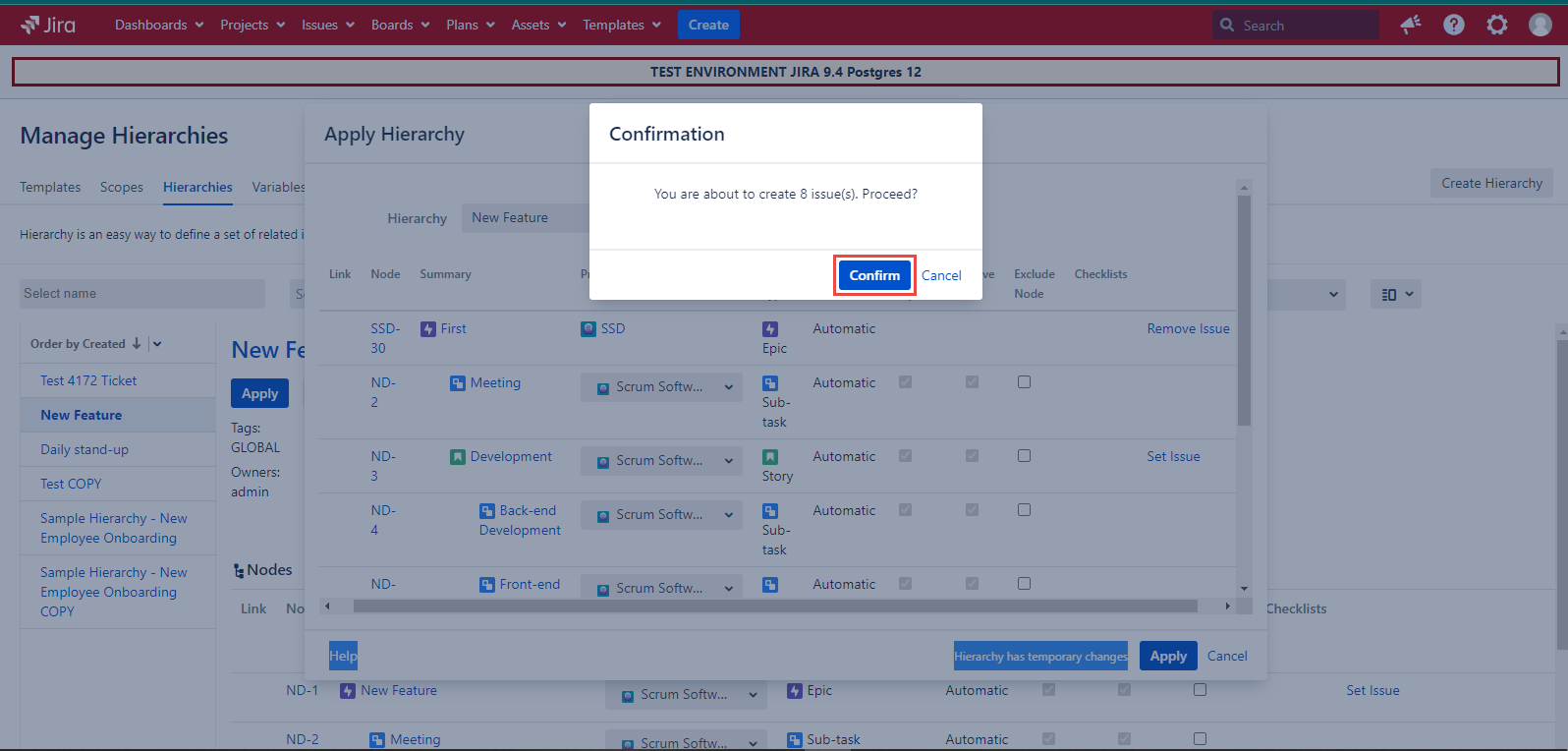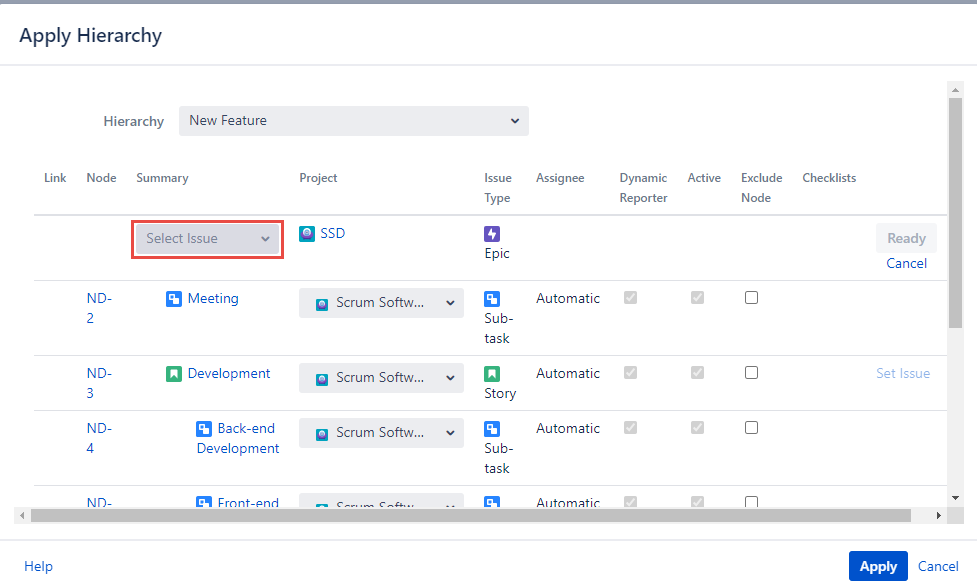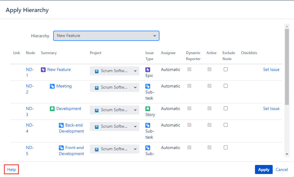 To proceed the child issues creation click the ‘Apply’ button located at the footer of the ‘Apply Hierarchy’ dialog.