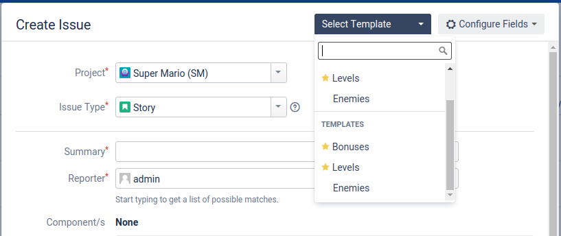 5. | Scope | Restricts Template’s visibility. The Template will be available only for projects, issue types, groups, owners, and users specified in the Scope. |