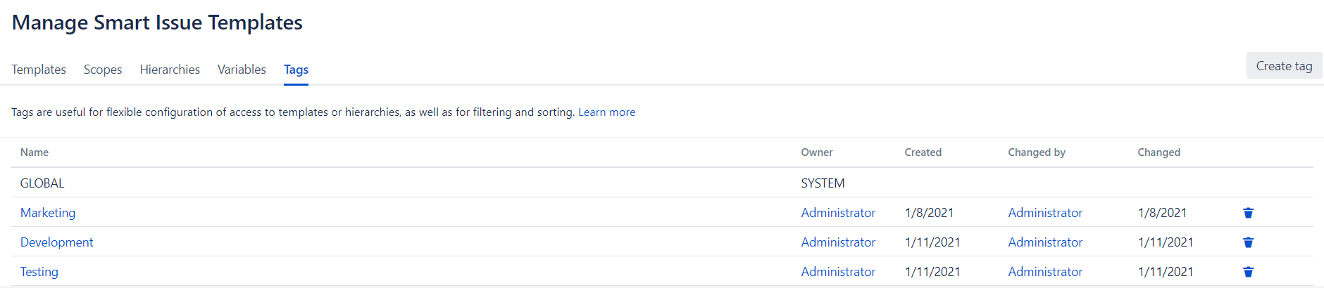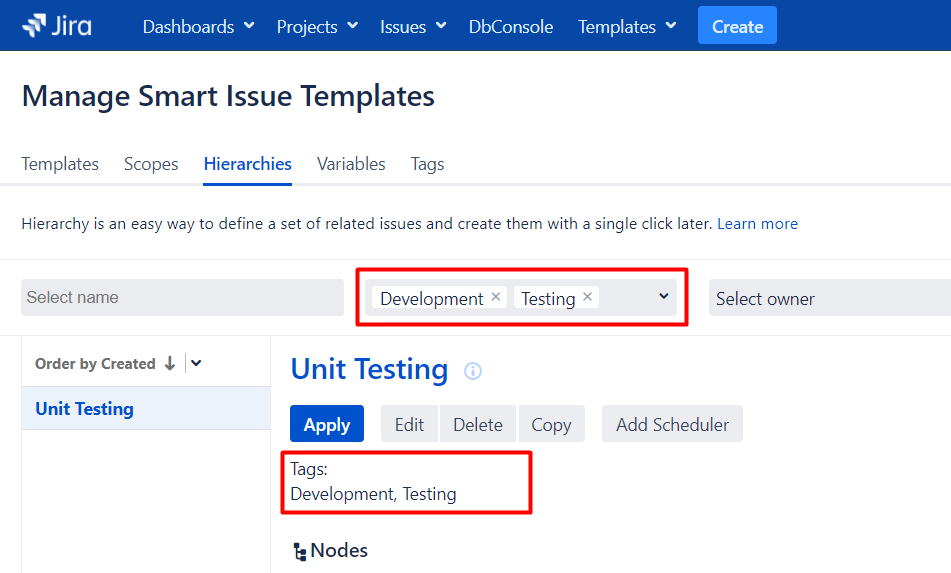 With tags, you can mark your templates or hierarchy by special values that will have a sense for you. For example, it can be the names of departments where this template\hierarchy will be helpful. Then you can easily find it using a filter.