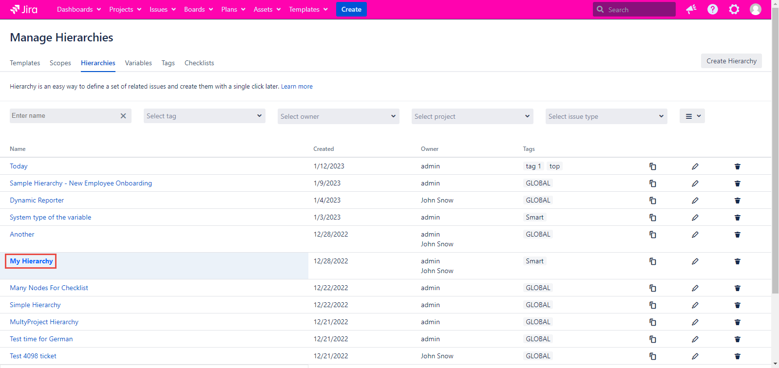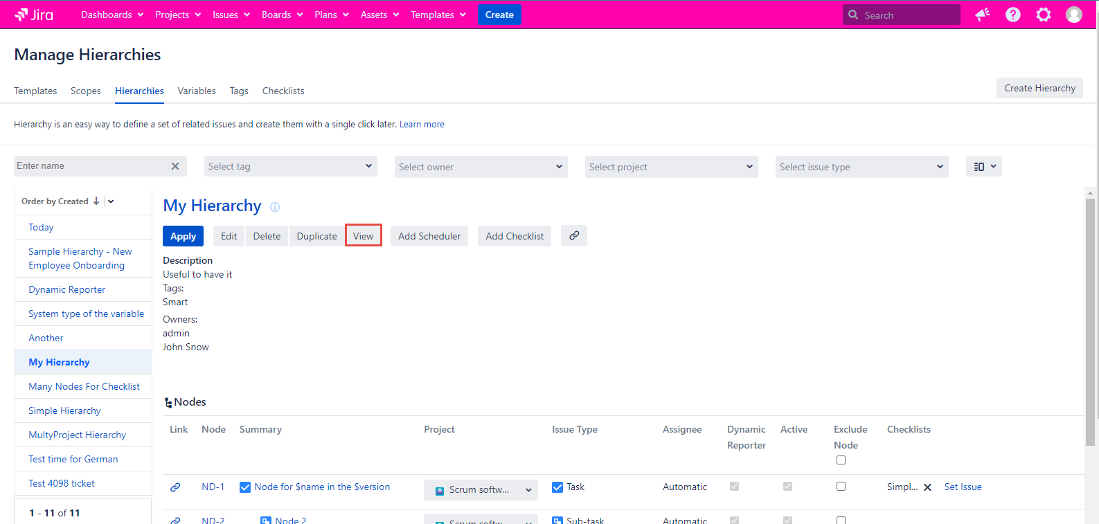 If you prefer the List view for the Manage Hierarchies page, you have to click the Hierarchy name to open the View Hierarchy page. It will be opened in the new tab.