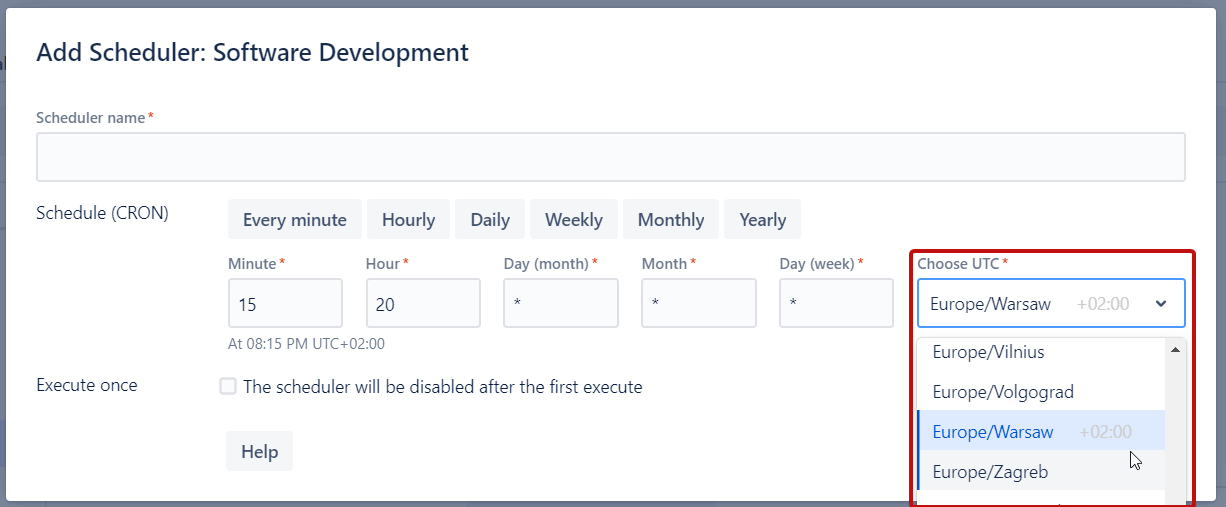 Now you can select the time for executing the scheduler according to your UTC time zone. The time will be converted automatically and the hierarchy will be applied in time.