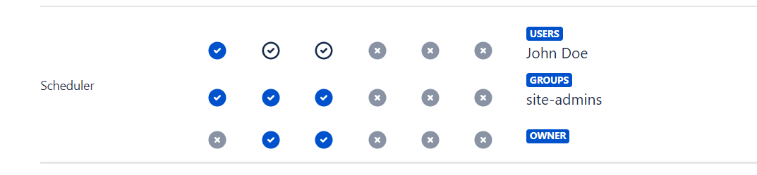 In this case, John Doe can create schedulers, but he will be able to edit and delete only the ones, he is the creator of.