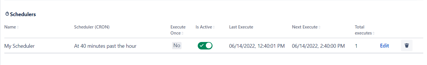 Is Active - switch this toggle to temporary disable/enable your scheduler without deleting it