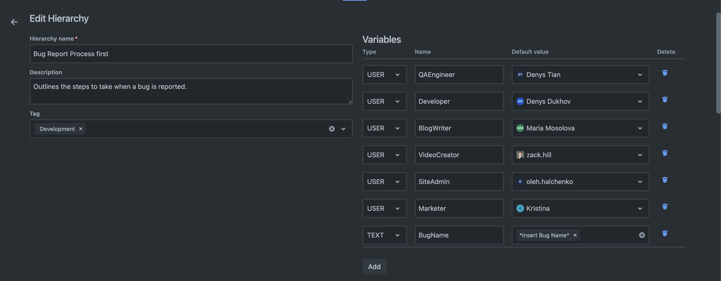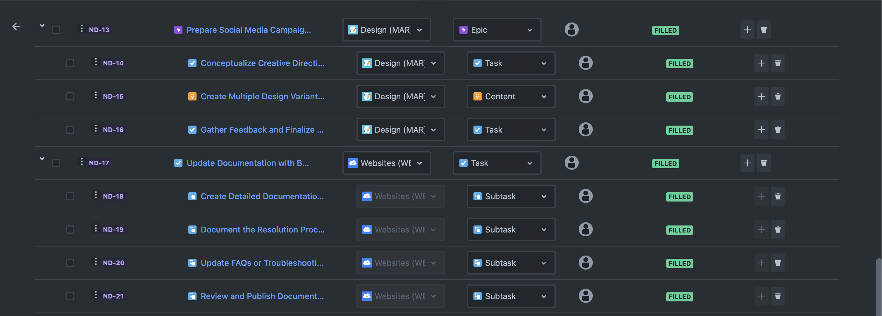 The framework is deployed across various projects— Development, Websites, Blog, Design, Video—each tackling distinct phases of the bug reporting and resolution journey. This structured approach ensures that responsibilities are clearly delineated and tasks are systematically organized, fostering a cohesive and collaborative project environment.