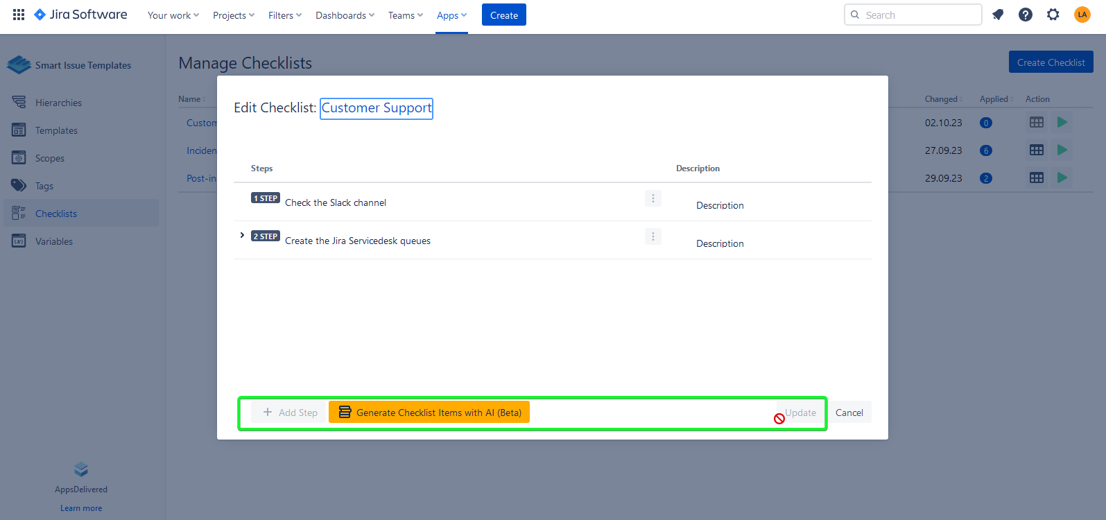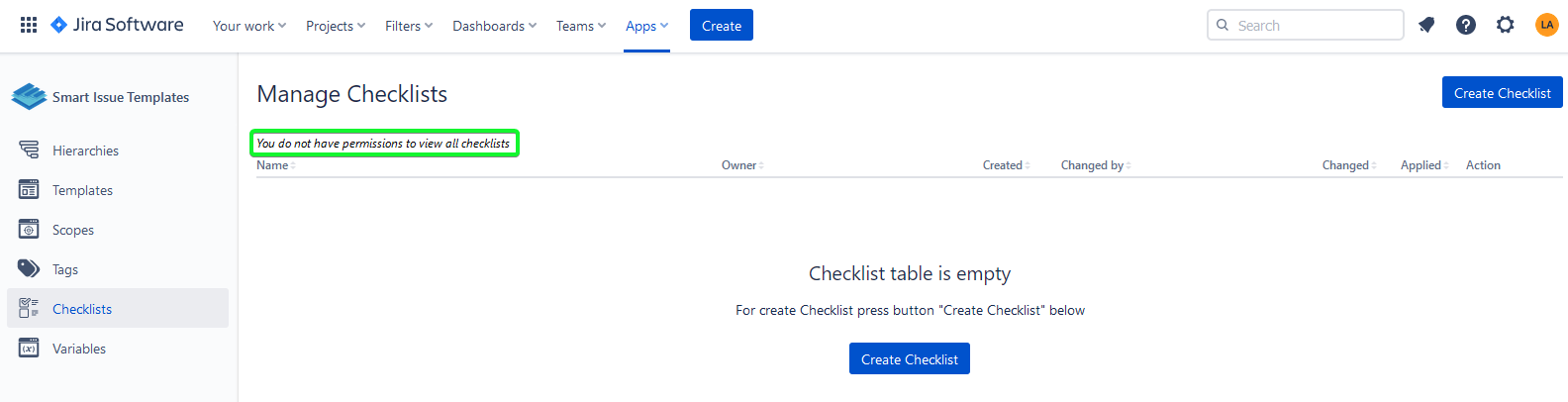 The Checklist permissions are integrated into other Smart issue Templates permissions.