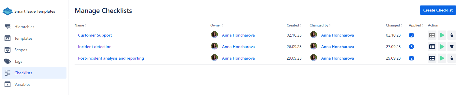 Delete | ability to delete Checklists. If disabled - users can delete only their Checklists |