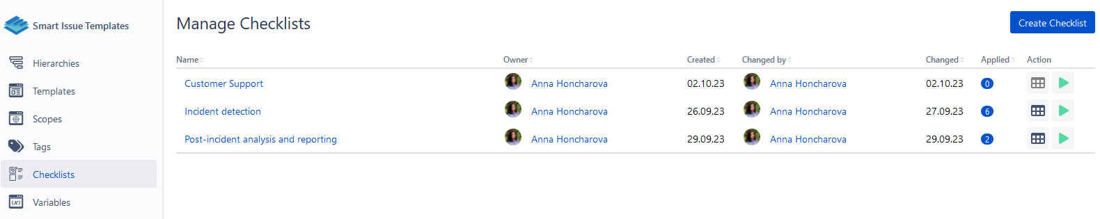 Edit | ability to edit existing Checklists. If disabled - users can edit only their Checklists |