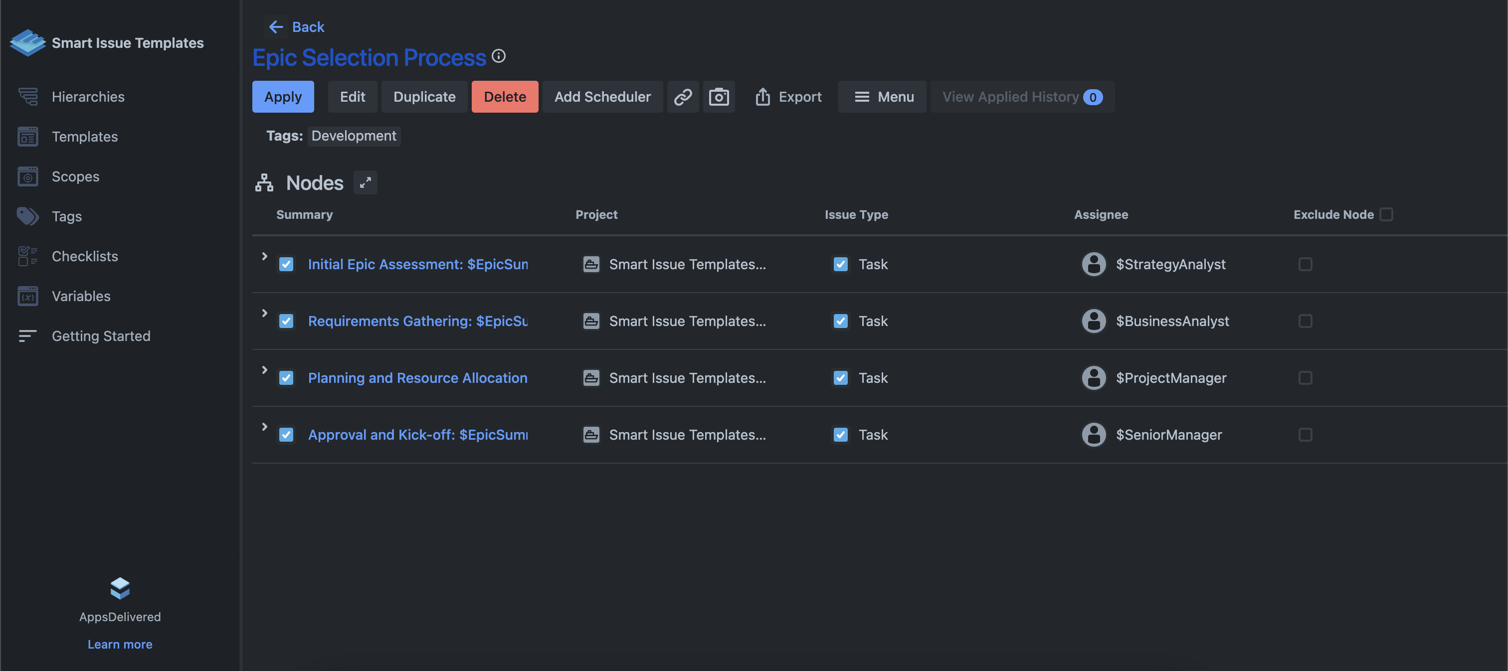 This document delineates a comprehensive approach to selecting epics, leveraging Smart Issue Templates for Cloud (SITC) to automate and refine the selection process. The goal is to ensure a strategic, efficient, and effective method for evaluating, planning, and initiating epics, with distinct roles and responsibilities assigned to each task within the process.