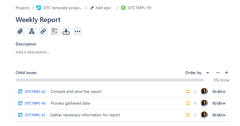 Hierarchies allow users to create a set of related issues (i.e. Sub-tasks and Stories) in a matter of a few clicks.