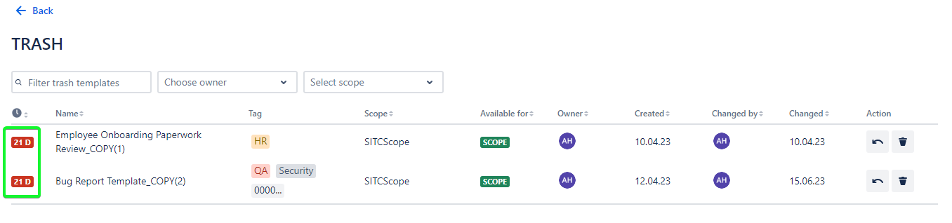 Now the Template has moved to the Trash and will be saved in the Trash using 30 days. After these 30 days, the Template will be deleted from the SITC app.