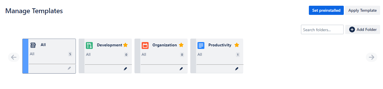 Use themed Template folders - Productivity, Development, Organization or create your own.