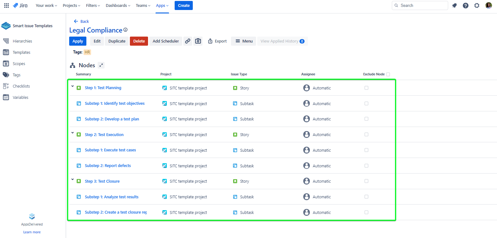 In the left sidebar, scroll down and select Smart Issue Templates.
