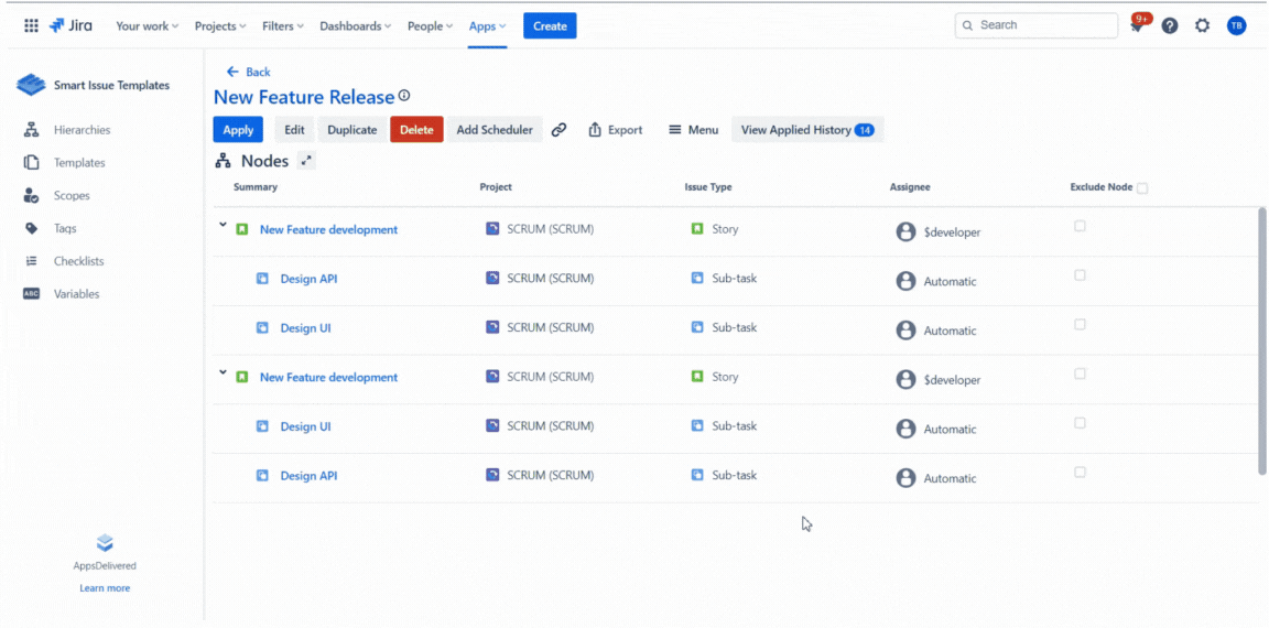 The Jira Project View page is opened after clicking the 'View' button in the 'Issue' field on the 'Edit Template' dialog is current Template was created with Hierarchy Node