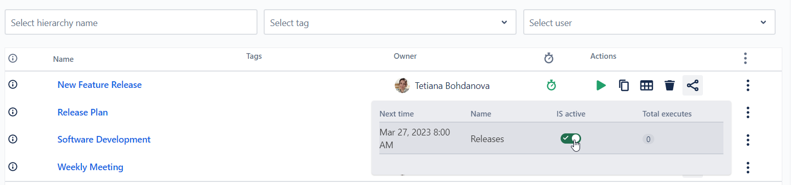 Added toggle for activating/deactivating a Scheduler in the Hierarchy table
