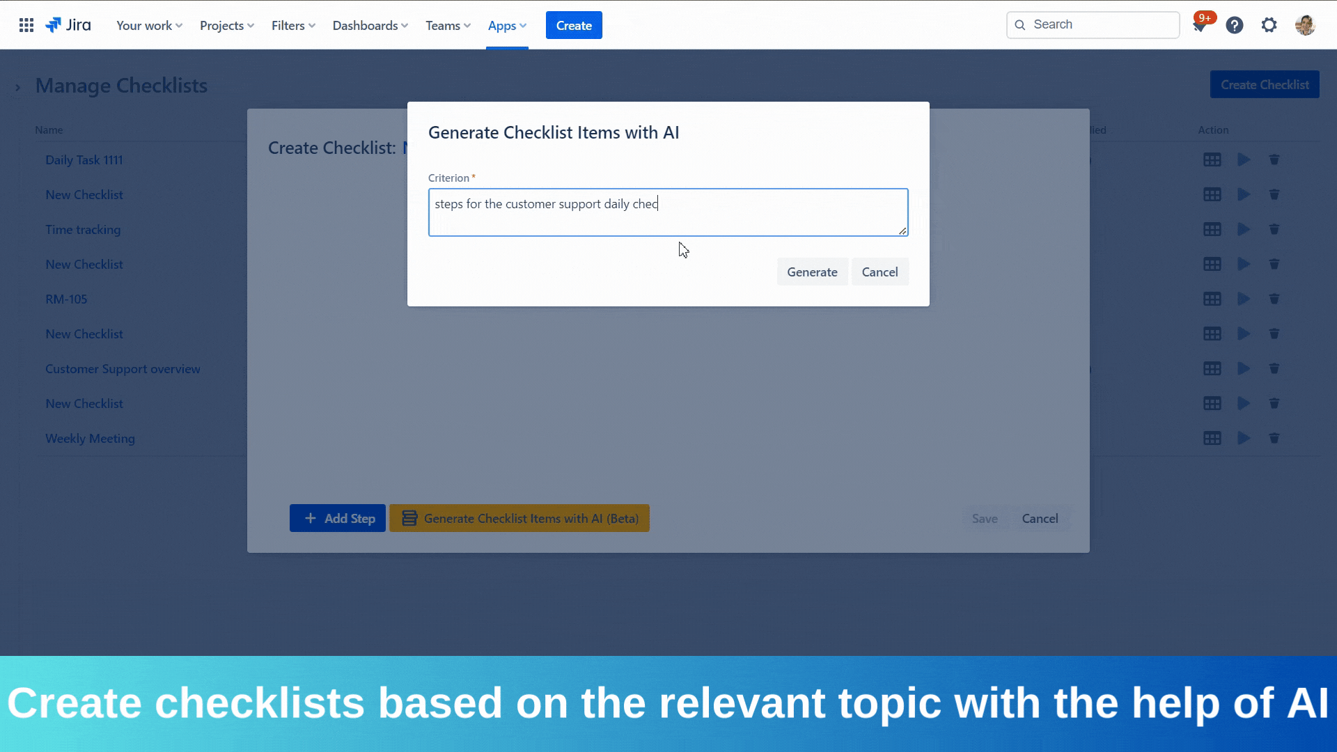 This new feature lets you easily create checklists and hierarchies with the power of AI directly in the Smart Issue Templates app. All you have to do is enter your prompt, and our AI-powered tool will do the rest for you. Additionally, you can improve your node descriptions with just one click by selecting one of the AI-generated variants and editing it to your liking.