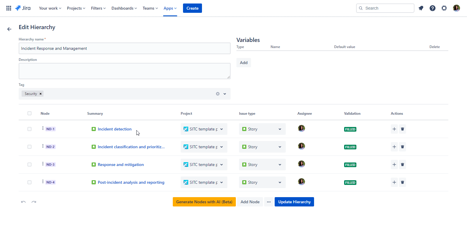 The ‘Variables for *hierarchy new issues’ text is shown in the ‘Confirmation’ dialog on the ‘View Hierarchy’ page while Applying the Hierarchy if the Hierarchy doesn`t have a Variables