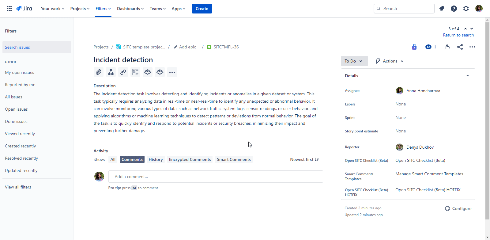 For a more streamlined user experience, we've relocated the 'SITC Checklists' module. It's now directly accessible from the main screen of the Jira Issue View page, making it quicker and more intuitive to access and use.