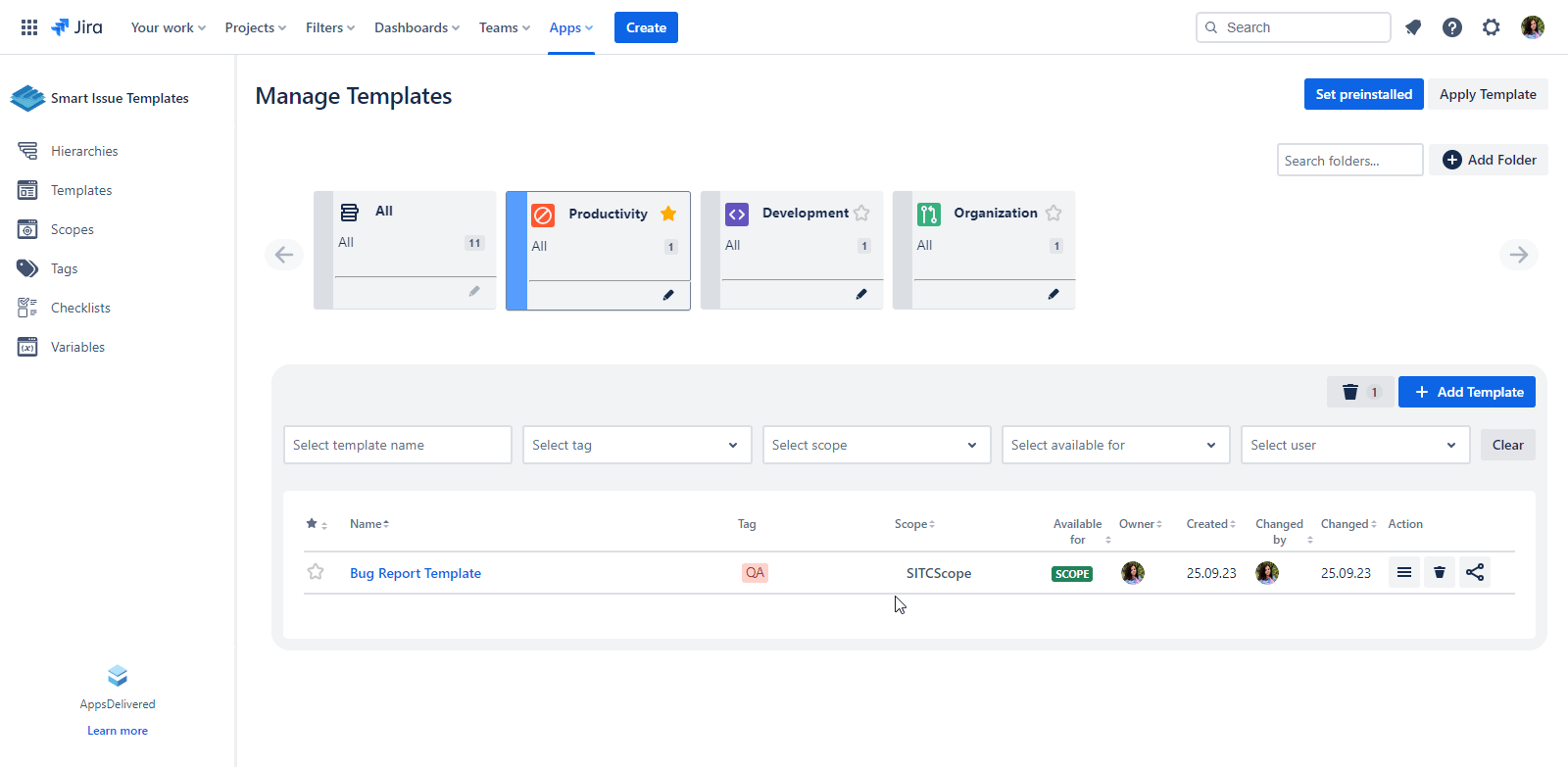 🚀 Scope details on the Manage Templates page