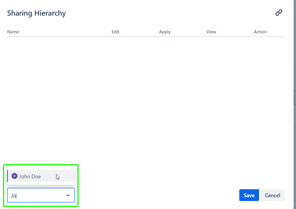 Select the users in the ‘Add user’ selector in the ‘Sharing hierarchy’ dialog: