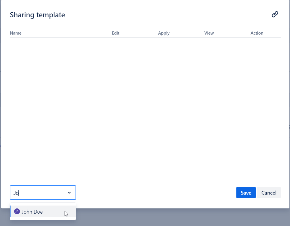 Select the users in the ‘Add user’ selector in the ‘Sharing template’ dialog: