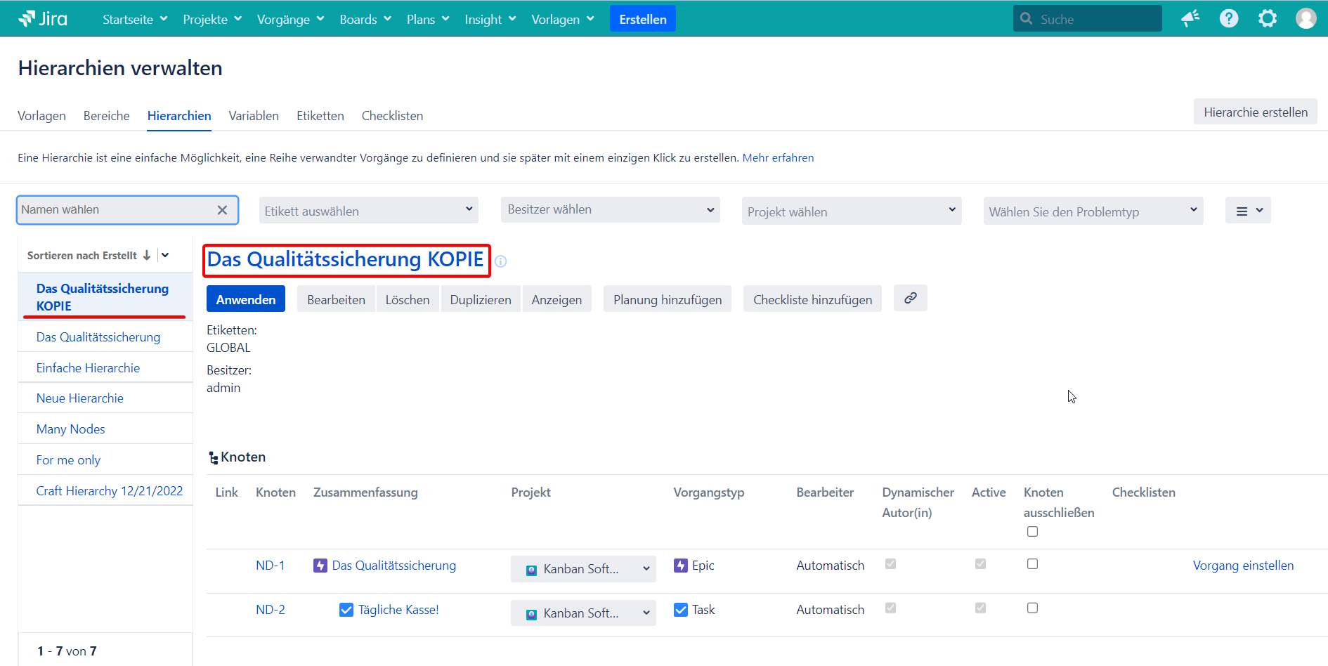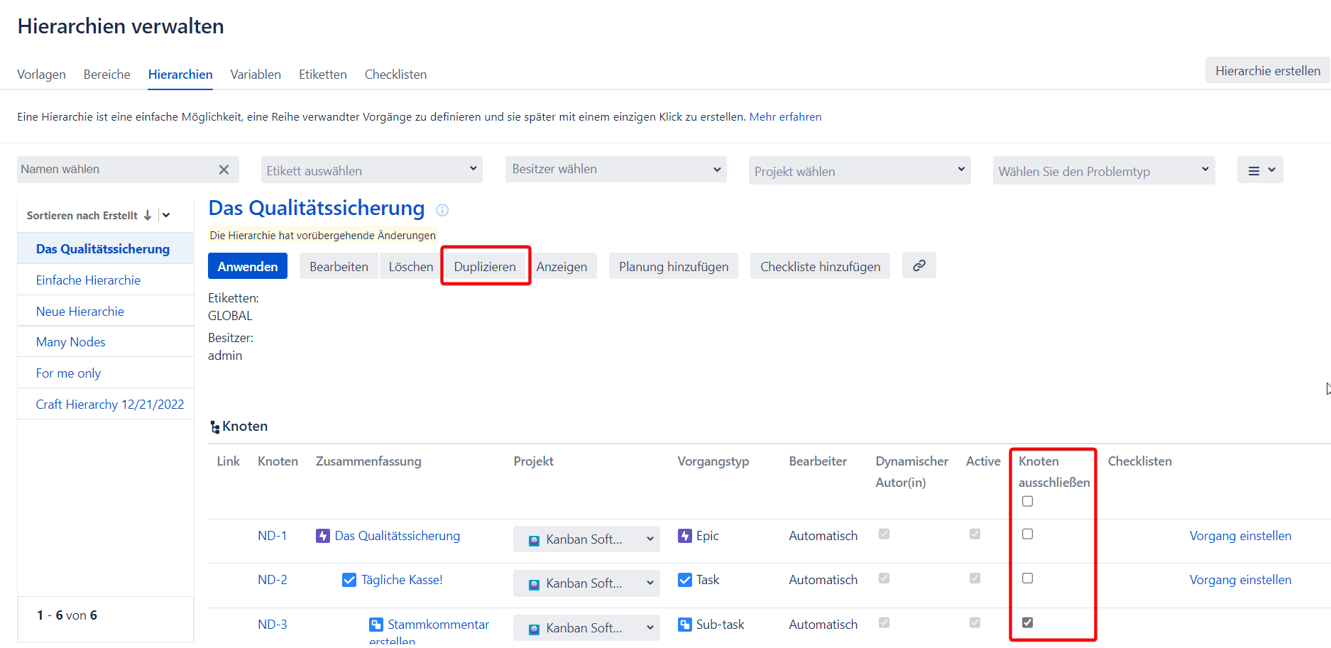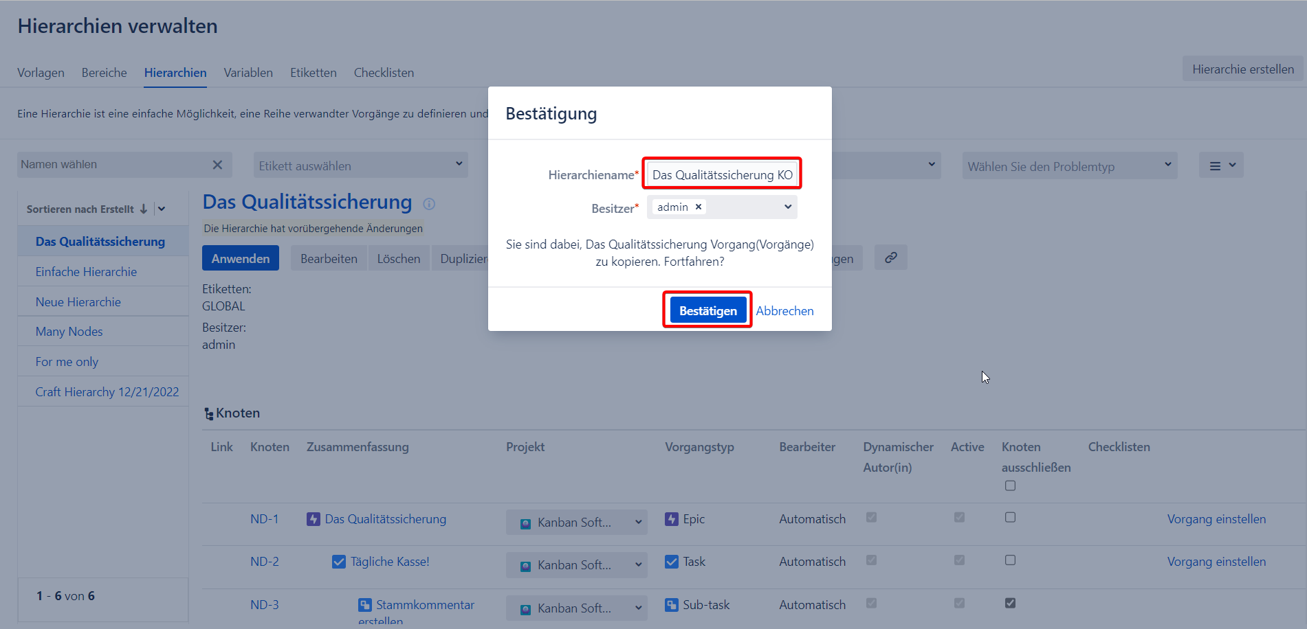 Für eine insgesamt bessere SIT-Flexibilität und die Benutzerfreundlichkeit bieten wir eine Kopierfunktion, mit der alle deine Hierarchien kopiert werden können. Sie können auch eine Kopie der vorhandenen Hierarchie erstellen, wobei unerwünschte Knoten ausgeschlossen werden.