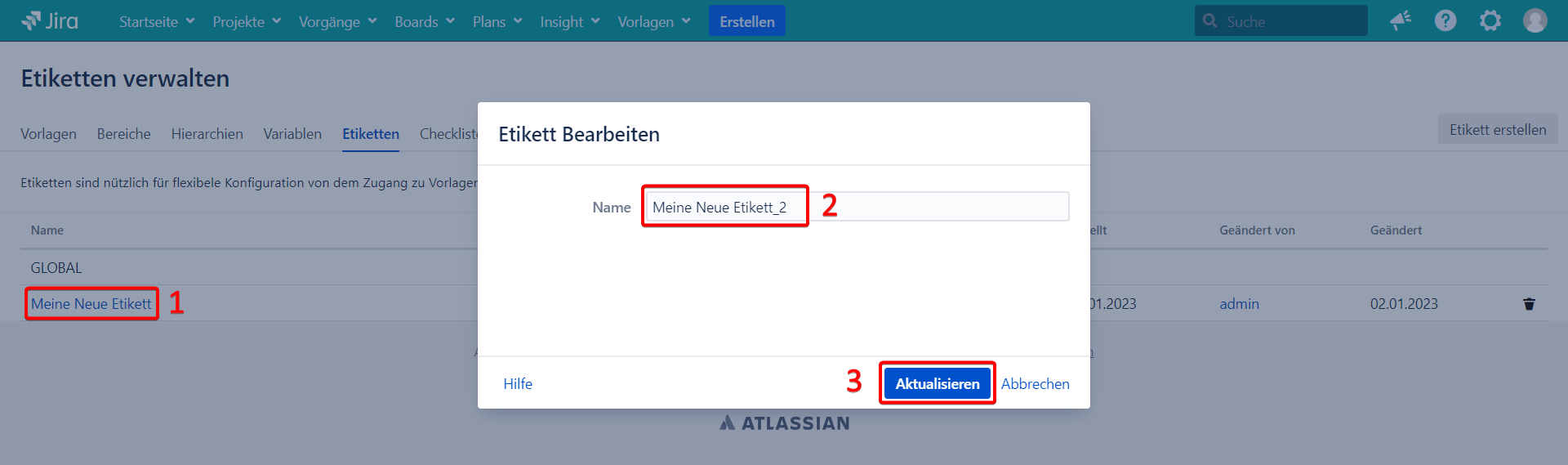 Ändern Sie den Namen des Etikett.