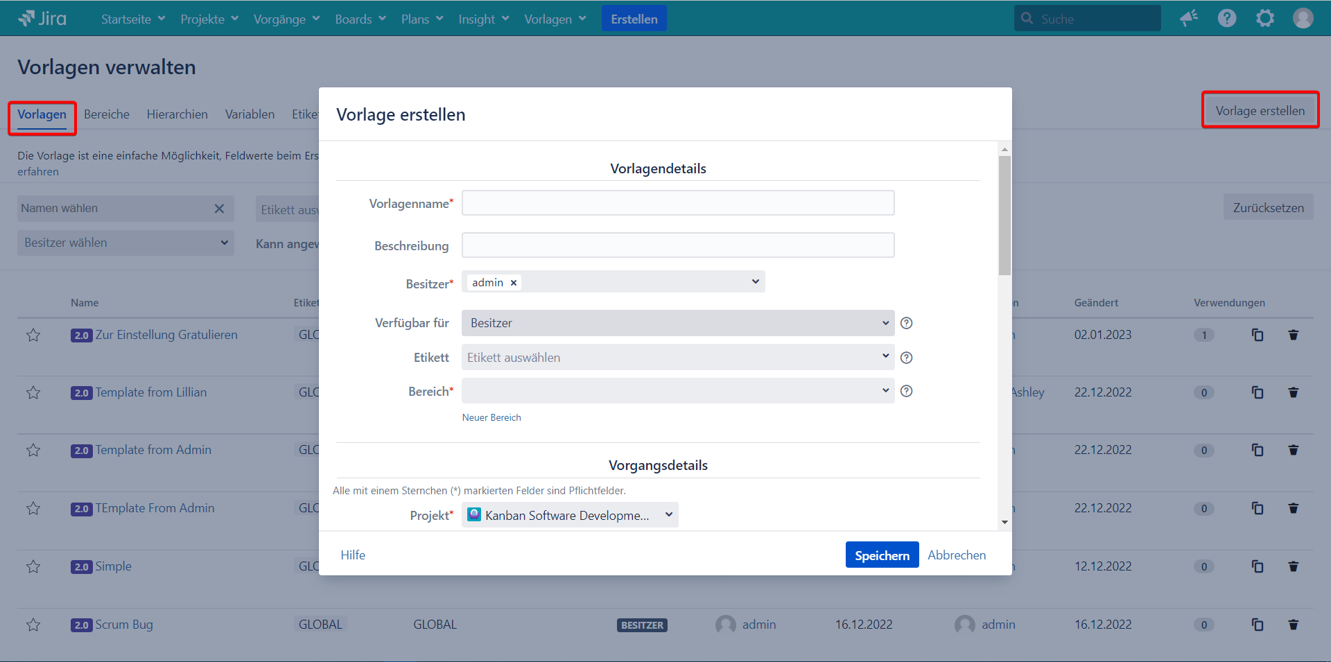 Füllen wir die Pflichtfelder für die Vorlage aus: Vorlagename und Bereich. Sie können Dokumentation für die Erstellung der Vorlagen hier finden. Sehen wir, wie das Feld Etiketten auszufüllen.