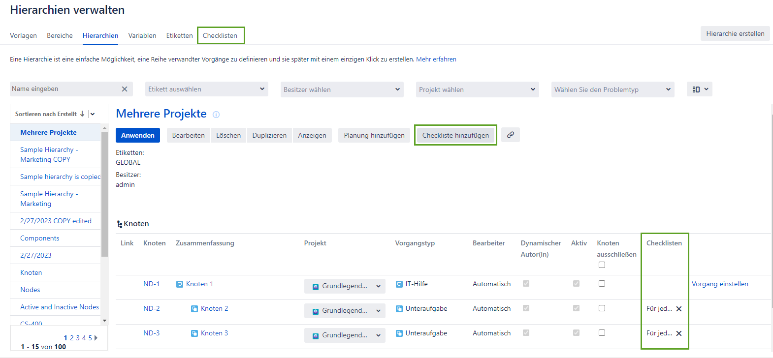 Checklisten verwalten
