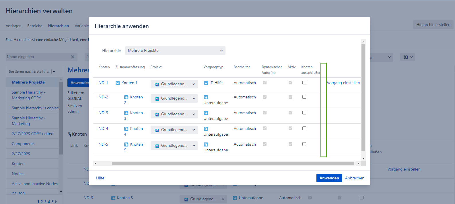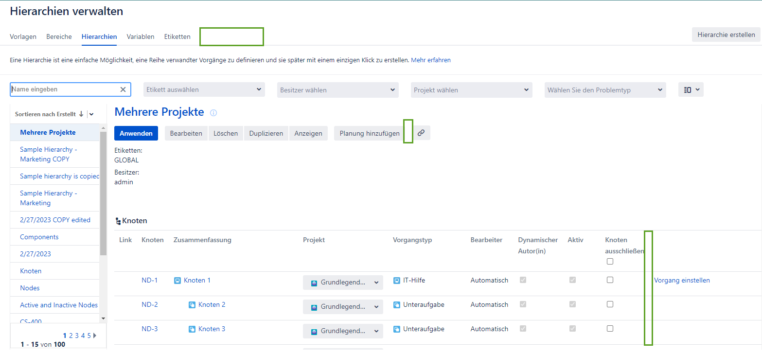 Hierarchien bearbeiten
