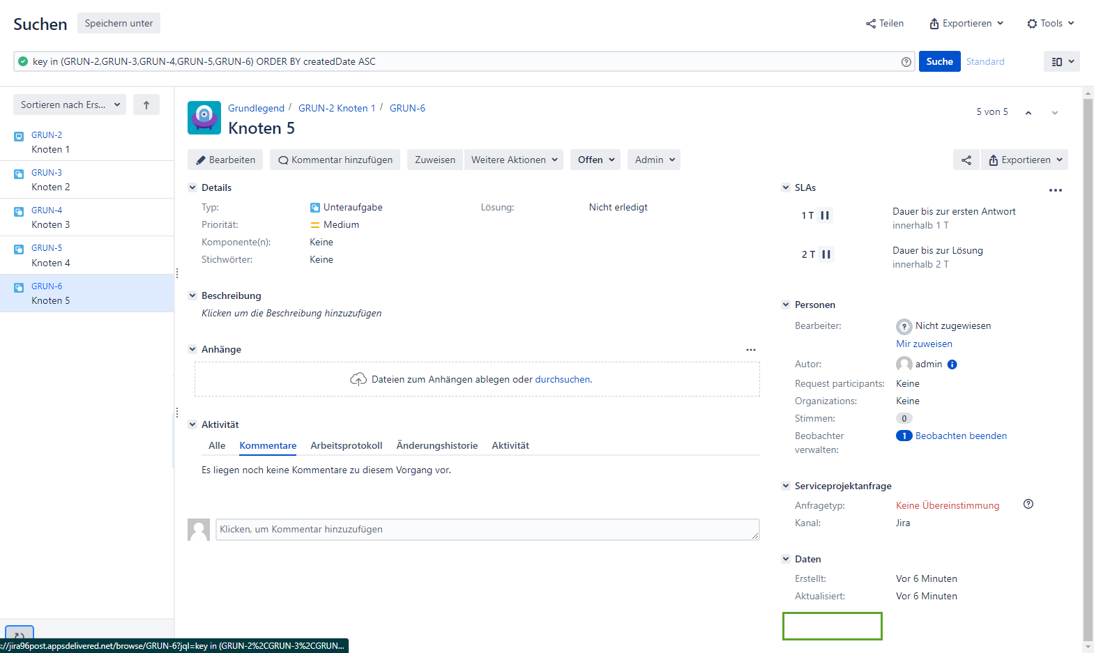 Wenn beispielsweise die „Intellinge“-Vorlage mit der ID „50“ unter Verwendung des Projekts „Scrum Softwareentwicklung“ und der Story als Problemtyp erstellt wurde, wird durch die Anwendung dieser Vorlage die Story im Projekt “Scrum Softwareentwicklung” erstellt, die Folgendes enthält „Intelligente“ Vorlagenfeldwerte.