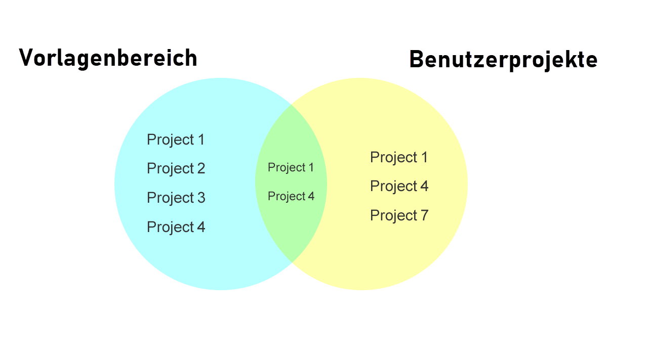 Der Benutzer, der nicht über diese Berechtigung verfügt, kann nur seine eigenen Vorlagen und Vorlagen anzeigen, die in Projekten verfügbar sind, auf die der Benutzer zugreifen kann.