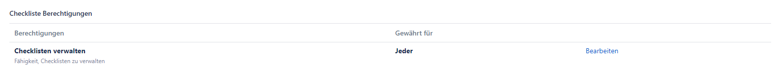 Checklisten-Berechtigungen