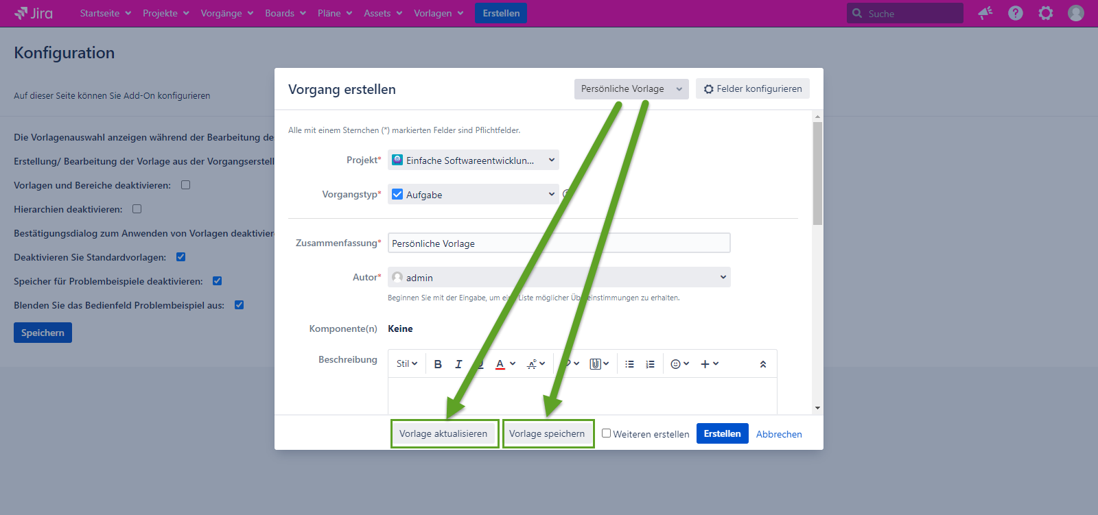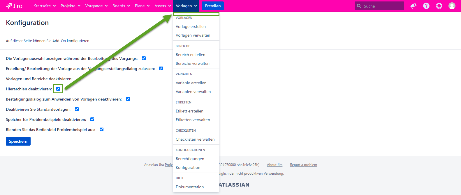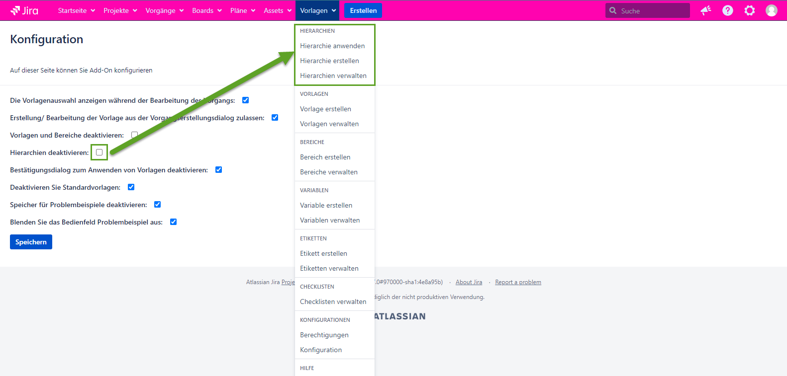 Bitte fügen Sie die Informationen über die Version von Jira und Add-On hinzu.
