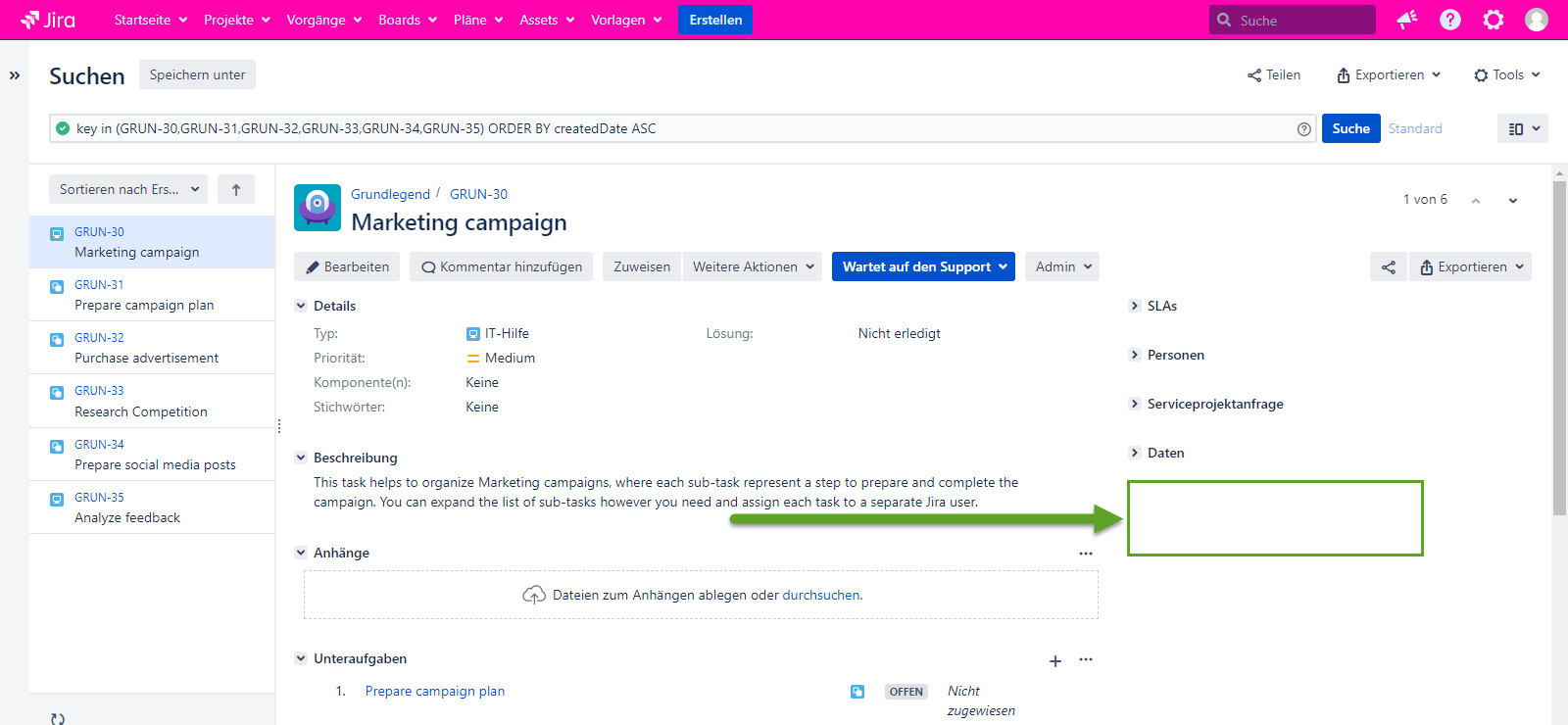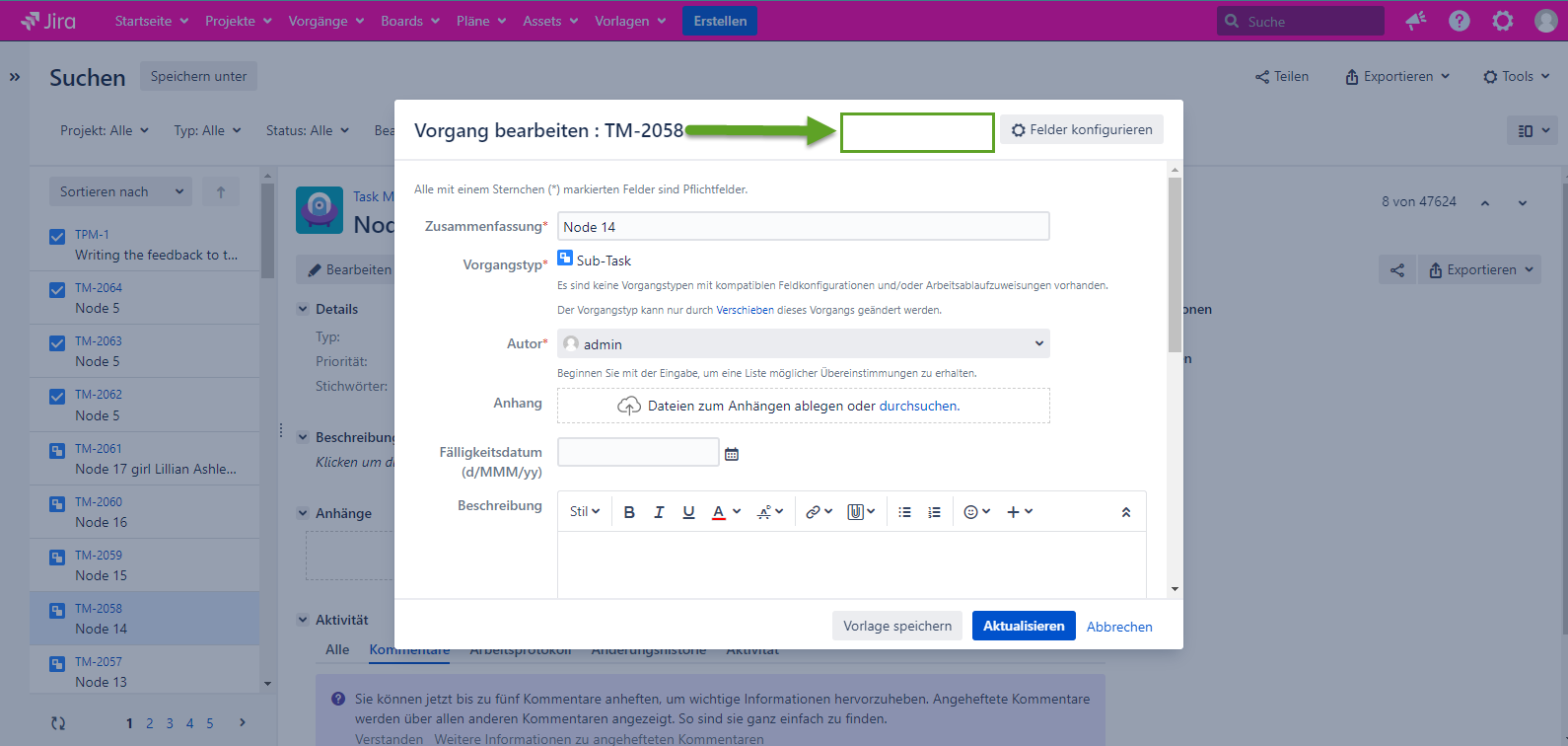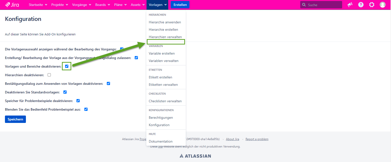 Bitte fügen Sie die Informationen über die Version von Jira und Add-On hinzu.